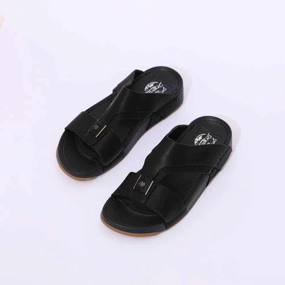 حذاء خليجي طبي أسود يجمع بين الأناقة والراحة، مصنوع من جلد طبيعي فاخر بتصميم أنيق ونعل طبي مريح يناسب الاستخدام اليومي والمناسبات الخاصة.