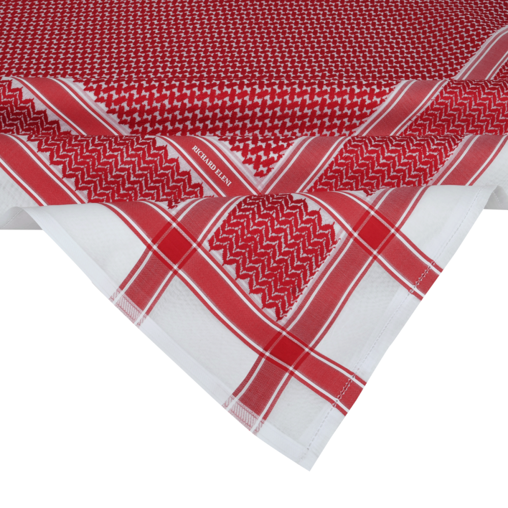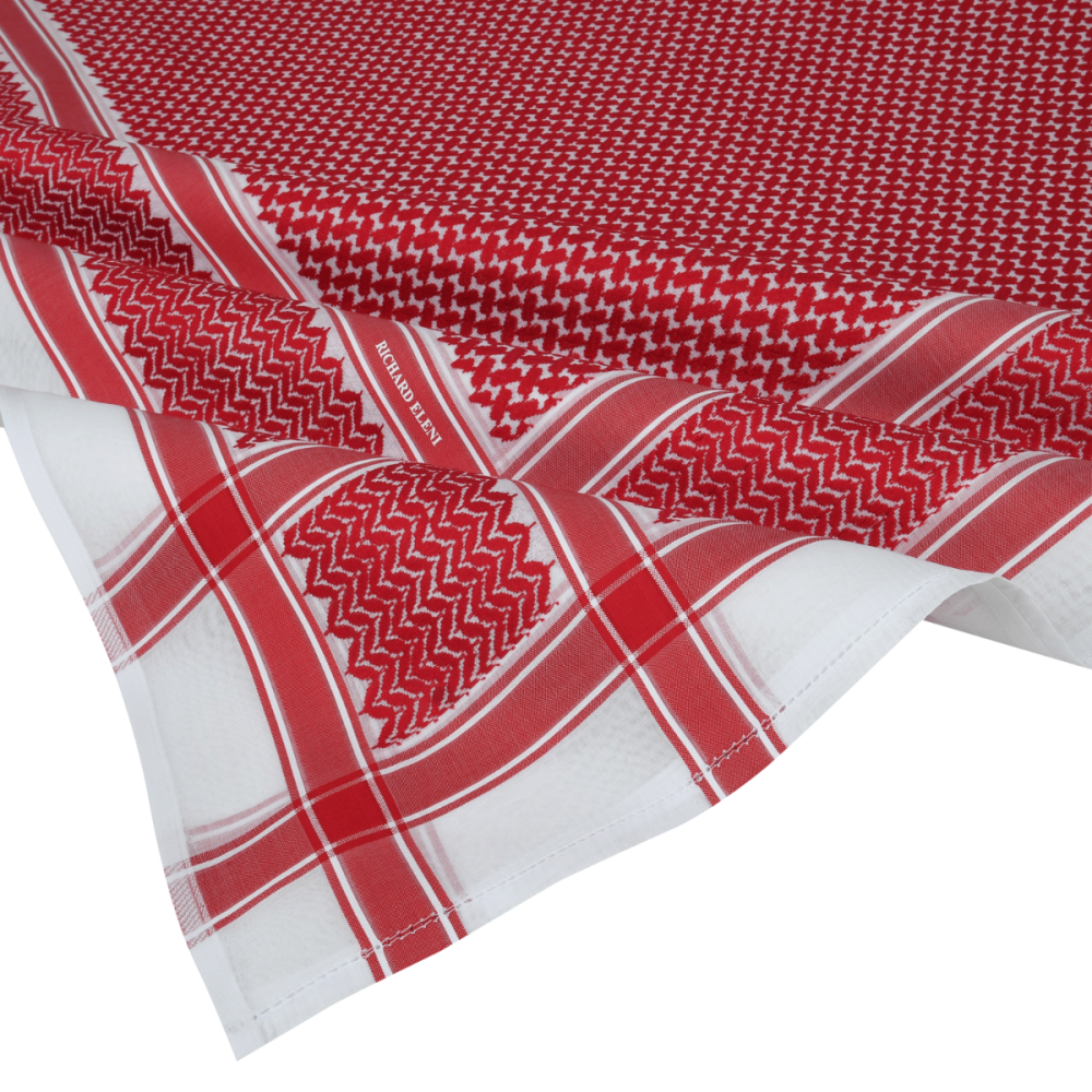 - شماغ ريتشارد إليني يأتي بتصميم أنيق يعكس الذوق الأوروبي الممزوج بالأصالة العربية.