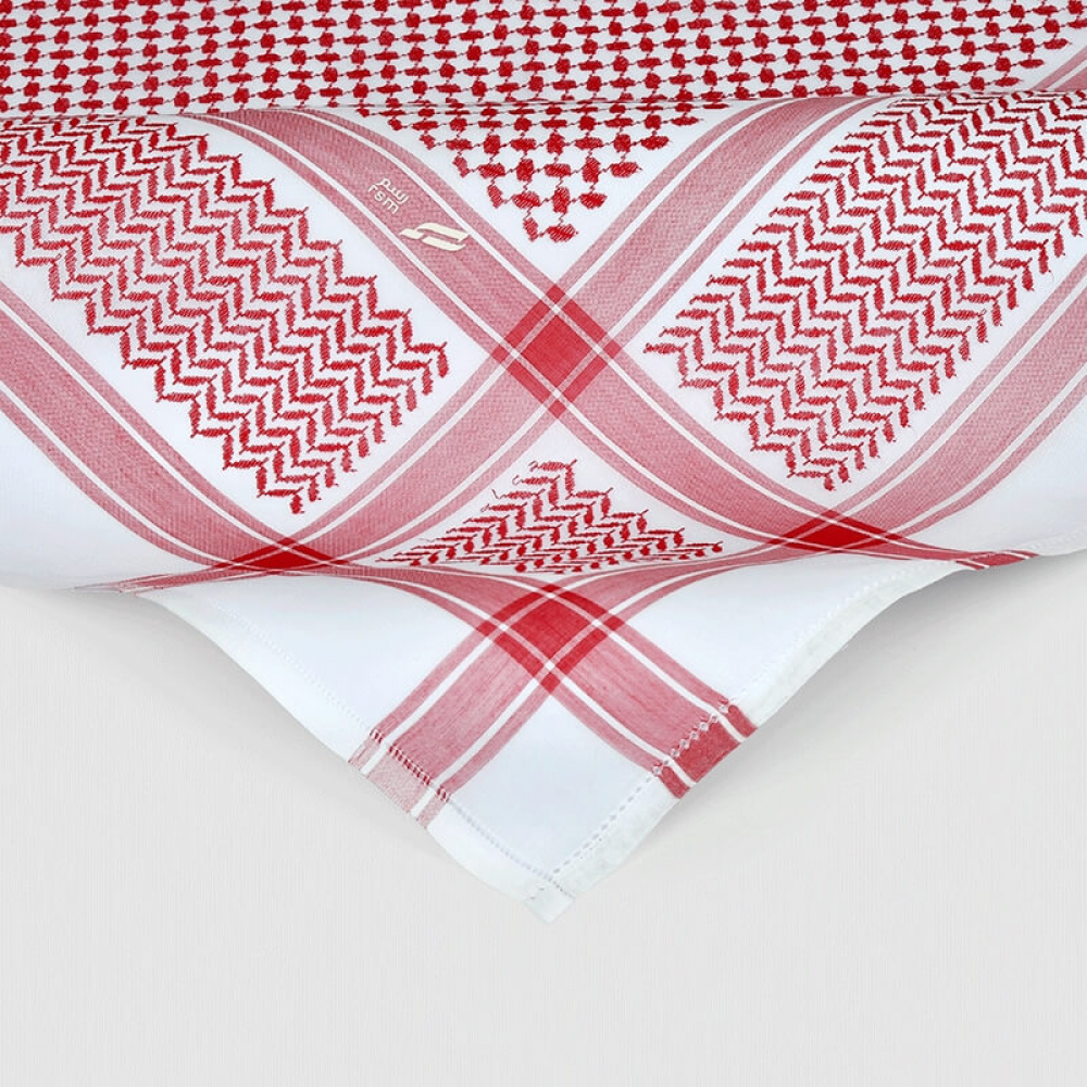 شماغ رسم أحمر غامق أناقة راقية بتفاصيل متقنة يُعد الشماغ أحد أهم رموز الأناقة في الإطلالة الخليجية، قطن فاخر مطوّر، ناعم الملمس، خفيف الوزن، ومتين ليبقى ثابتًا طوال اليوم. بتدرجات داكنة راقية وتصميم هندسي متوازن.
