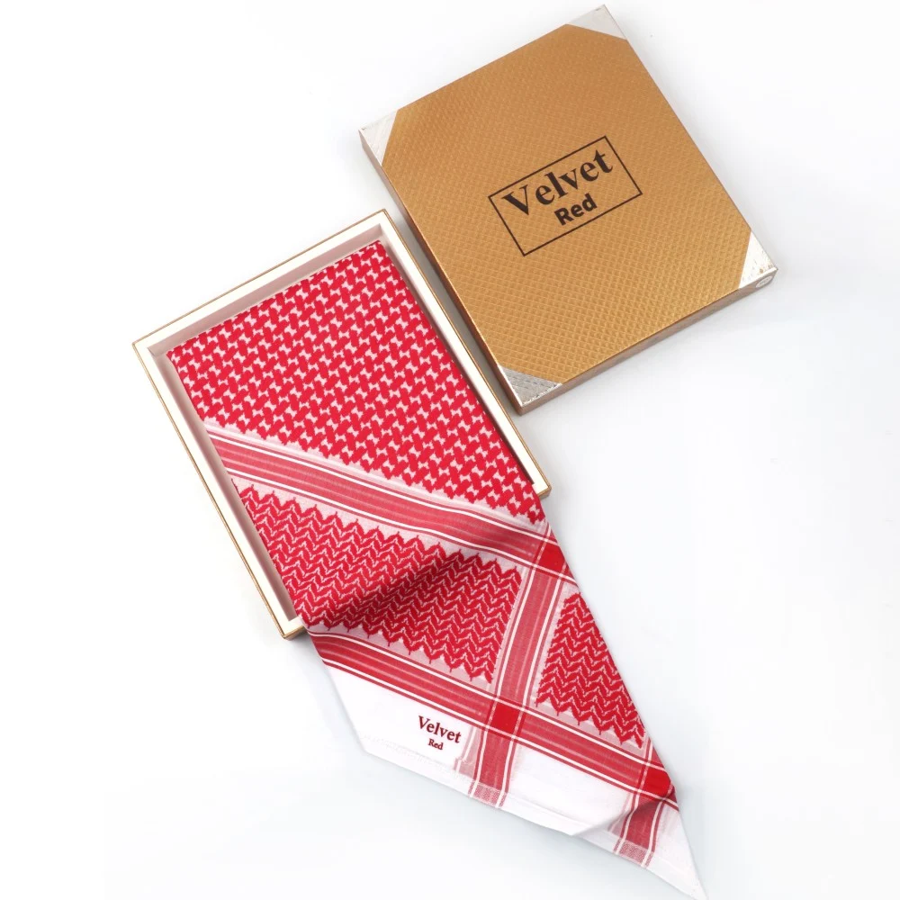 - شماغ فيلفيت أحمر دم غزال مصنوع من افخر انواع القطن العالمي بتصميم مميز وفريد بلونه الأحمر الغامق الذي يضيف لمسات أنيقة إلى مظهرك