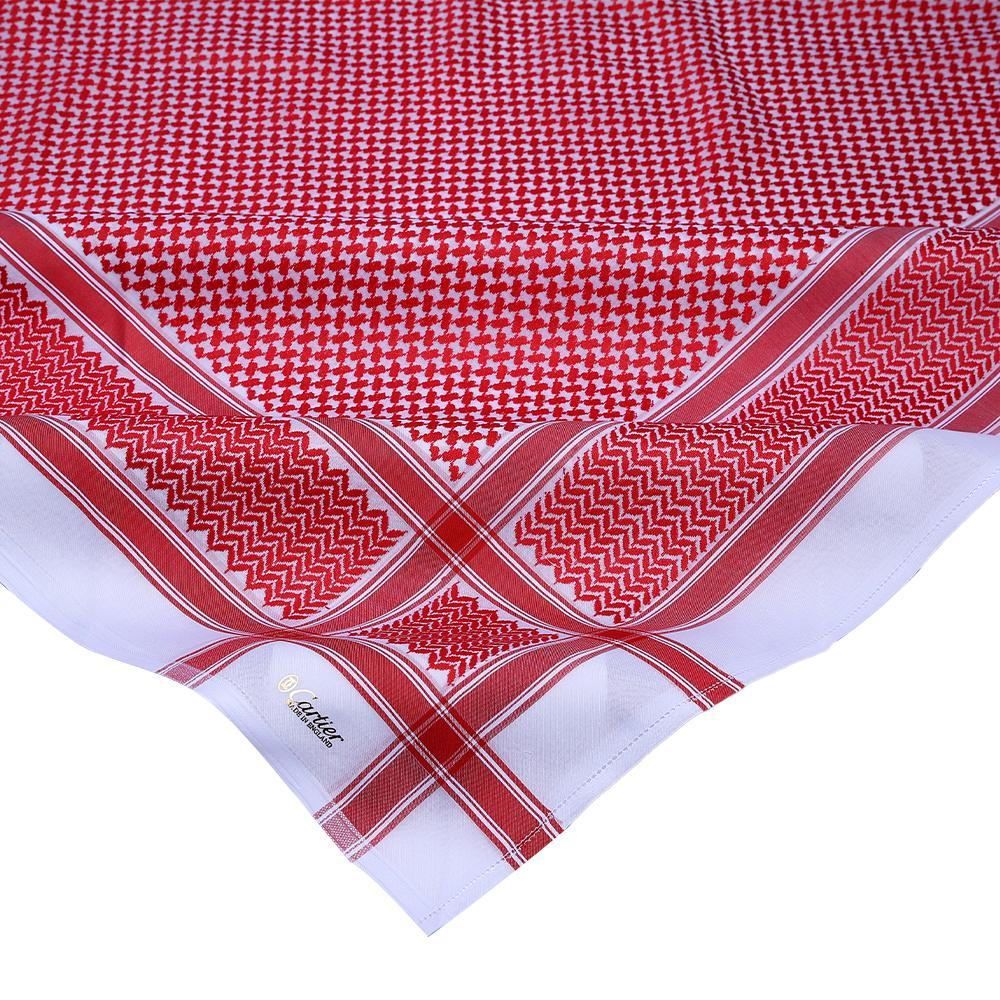 - اللون الأحمر في شماغ كارتير يمنحك حضوراً ساحراً، يتألق بالفخامة ويترك أثراً لا يُنسى لإطلالة تليق بك.