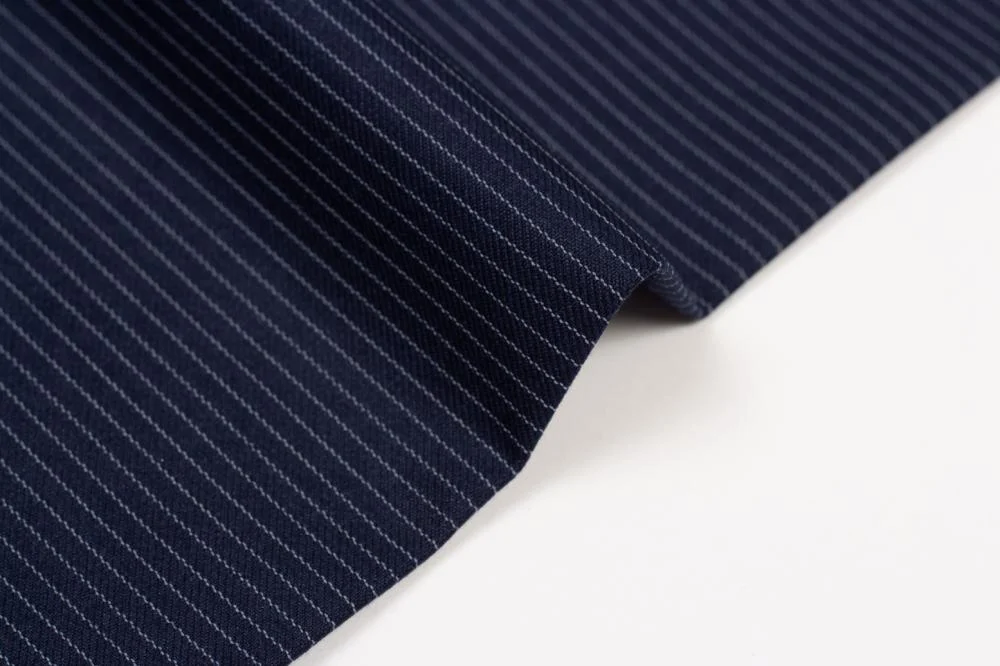 - النقشة واللون: مخطط باللون الكحلي بيبسي، يجمع بين الفخامة والكلاسيكية العصرية.