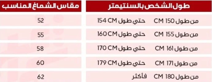 دليلك الأن لمعرفة مقاسك المناسب من شماغ روش بوبوا حتي تتمكن من معرفة مقاس الشماغ الصحيح يتم قياس طول الشخص وأخذ المقاس المناسب لطولك :
