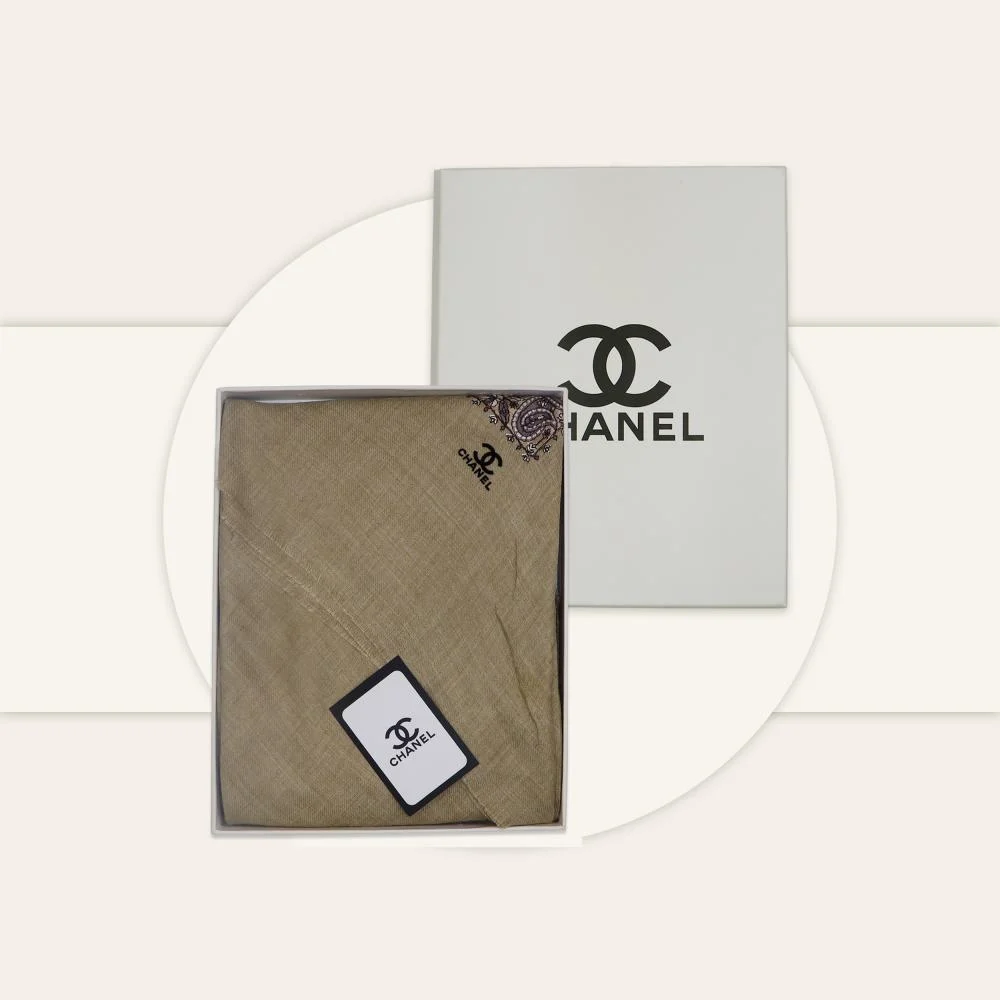 يُبرز شال كشميري شانيل البيج الغامق بتطريز عنابي فخامة التفاصيل ودقة الصنع. صُنع من كشمير طبيعي فاخر يمنحك دفئاً راقياً، مع تطريز عنابي أنيق يضفي لمسة من التميز والرقي.