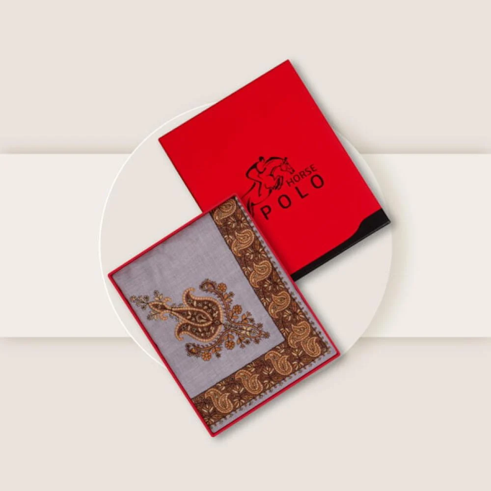 شال كشميري فاخر من ماركة بولو العالمية، يجمع بين الفخامة والأناقة العملية، ويضفي لمسة راقية على إطلالتك اليومية والرسمية. التصميم المميز والتطريز البيج الفاخر يعكسان الذوق الرفيع للرجل العصري.