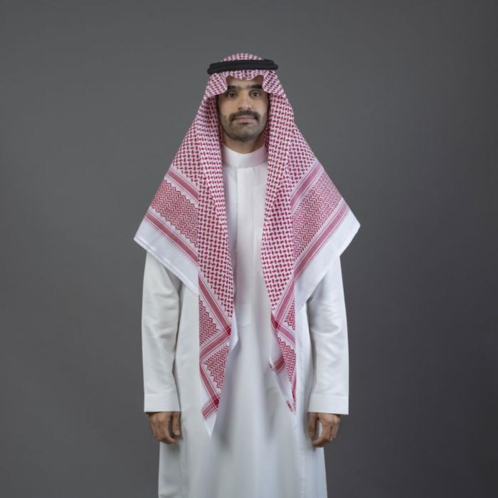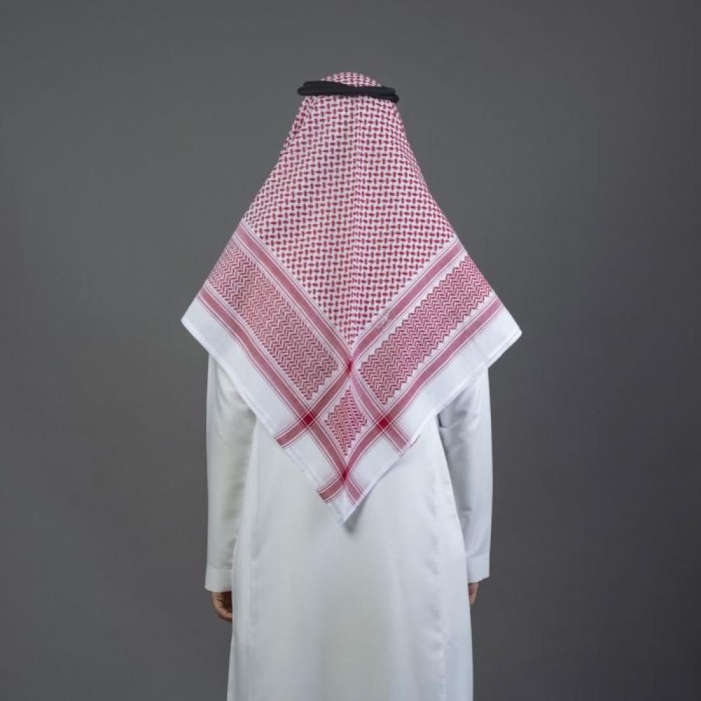 يتميز شماغ البسام البصمة باللون الأبيض الناصع مع نقوش حمراء أنيقة.