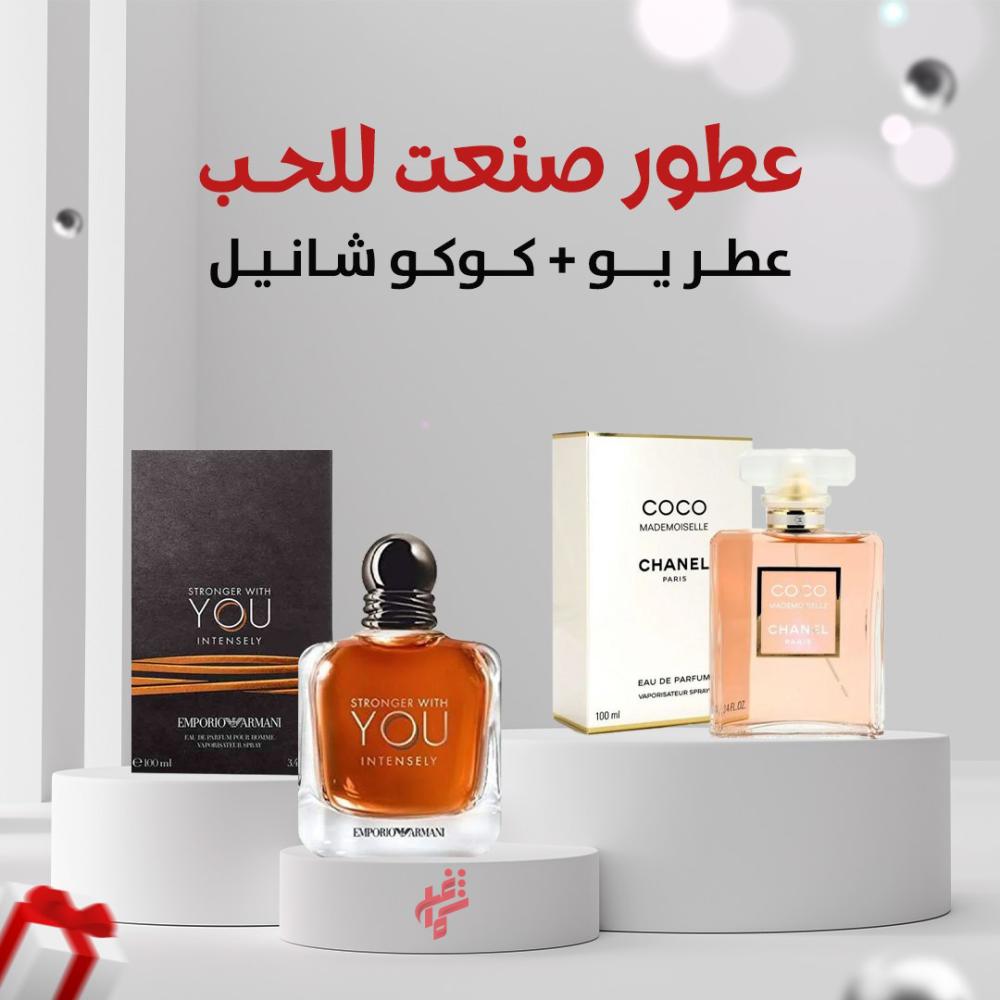 عرض عطر يو انتنس + عطر شانيل عرض حصري احصل على تركيبة فريدة تجمع بين عطر YOU Intense الرجالي الجريء، وعطر شانيل الأنيق والفخم، في عرض حصري لا يُفوّت!