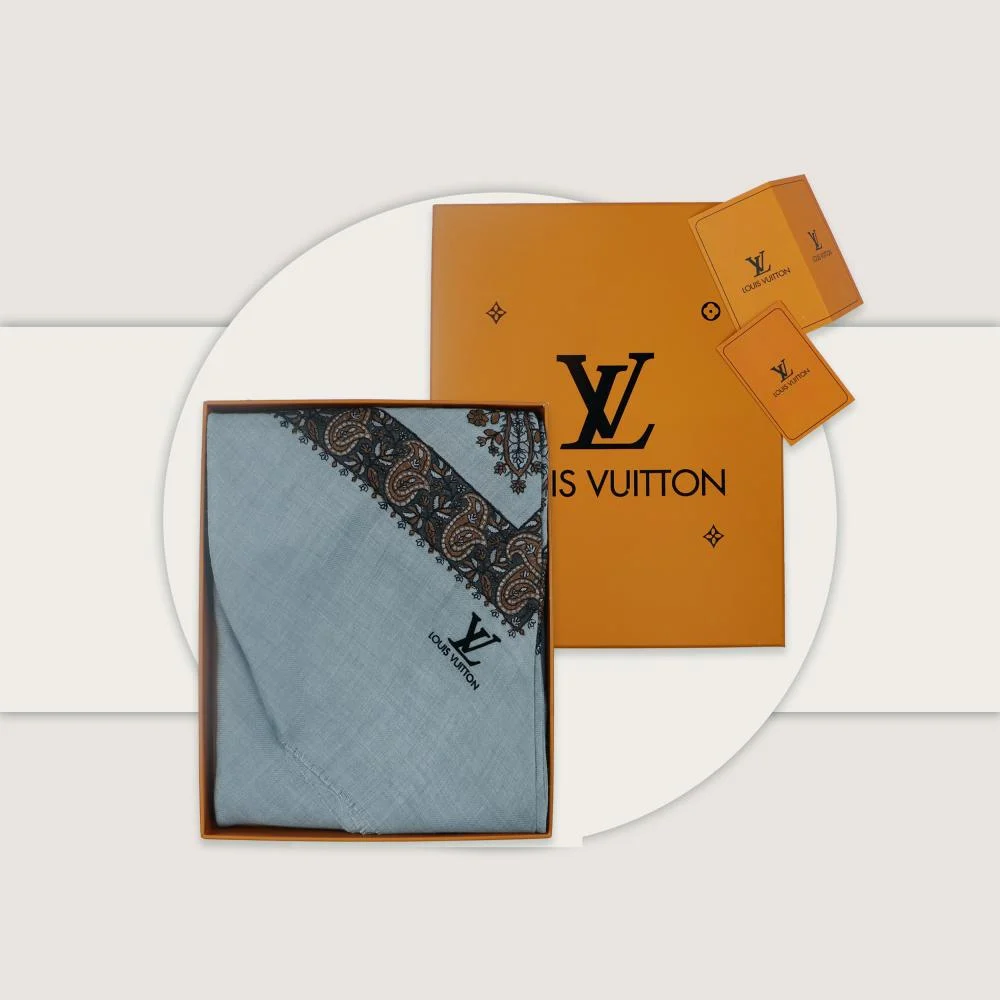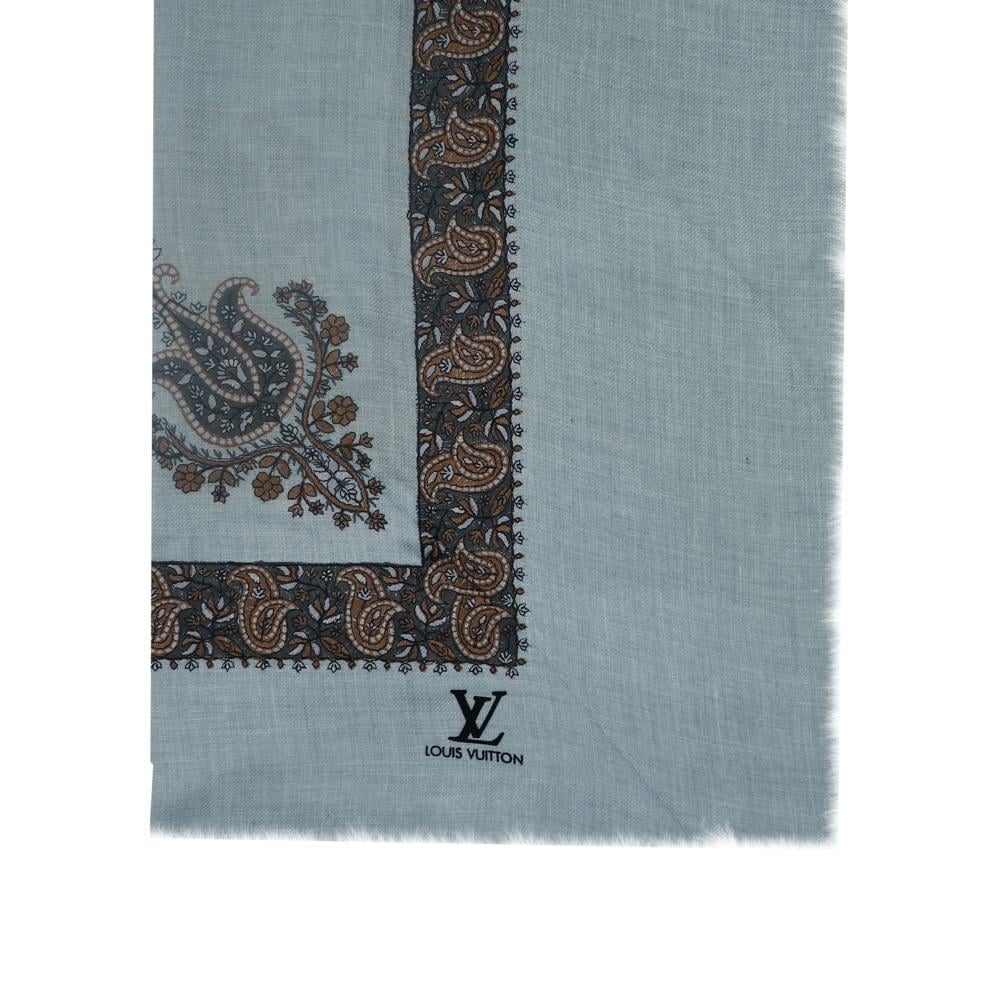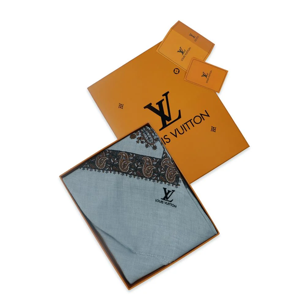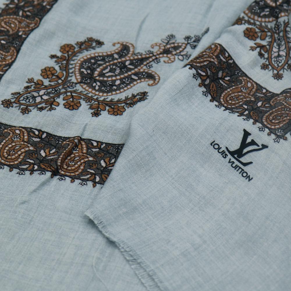 شال كشميري لويس فيتون فضي بتطريز بني اختبر مزيج الفخامة الكلاسيكية واللمسة العصرية مع هذا الشال الراقي الذي يعكس أناقة علامة لويس فيتون الشهيرة.